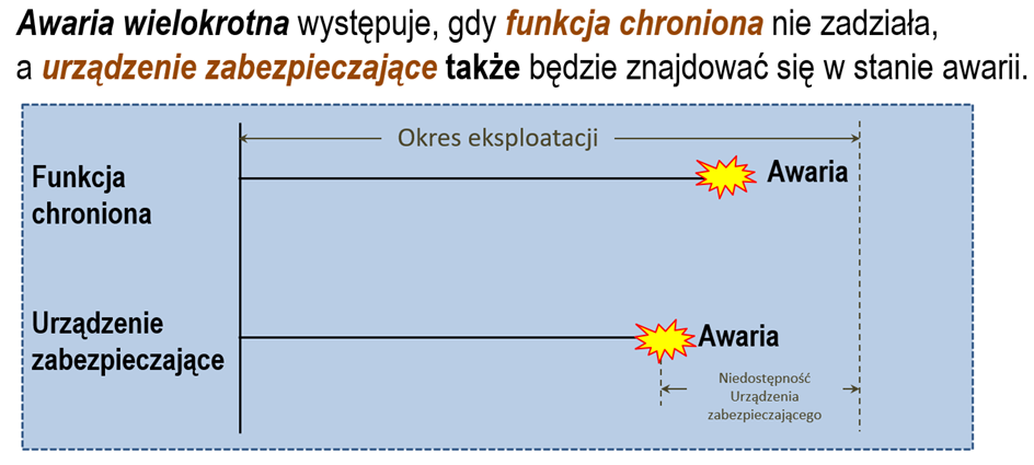 Awarie Ukryte to awarie, które nie są bezpośrednio widoczne lub wykrywalne podczas normalnej pracy systemu. Często dotyczą one urządzeń (funkcji) zabezpieczających, które są używane tylko w specyficznych sytuacjach awaryjnych. Awarie te mogą pozostawać niewykryte przez długi czas, co zwiększa ryzyko, że system nie zadziała poprawnie, gdy będzie najbardziej potrzebny.