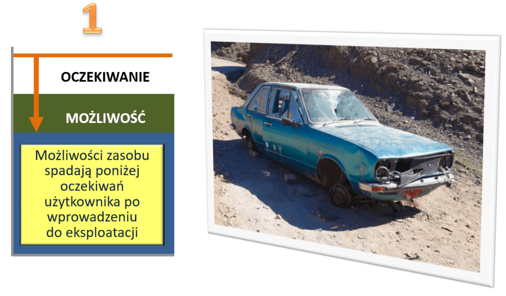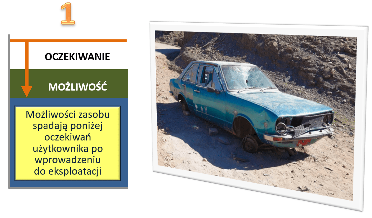 DRUGĄ przyczyną źródłową awarii jest sytuacja, gdy oczekiwania użytkownika przerastają pierwotne możliwości zasobu wprowadzonego do eksploatacji.